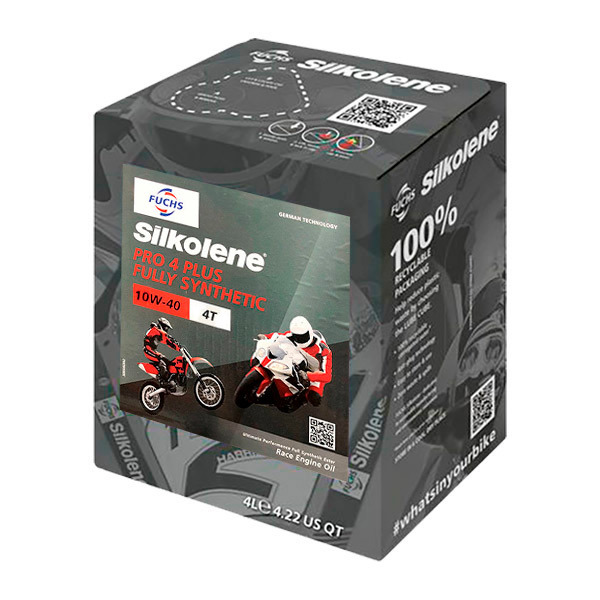 Silkolene crea la gama de lubricantes Pro 4 con la finalidad de aportar una mezcla con prestaciones de competición a motos de calle gracias a su compuesto especialmente seleccionado de aditivos.