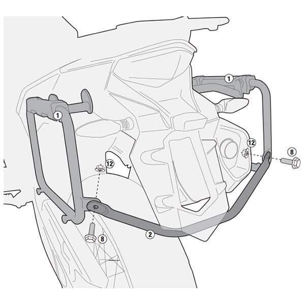Kit de anclajes laterales Givi PL7705CAM especifico para maletas Givi Trekker Outback. Fabricado para los modelos KTM 1050 Adventure 2015-16, 1090 Adventure 2017, 1190 Adventure/R 2013-16 y Todas las Super Adventure 1290 de 2015 a 2017